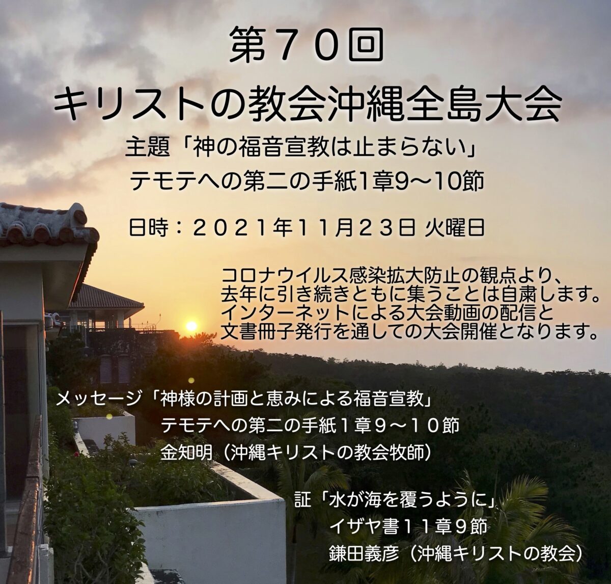 「第70回キリストの教会沖縄全島大会」開催につきまして一言ご挨拶申し上げます。